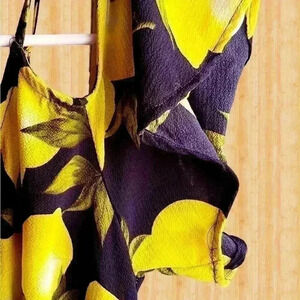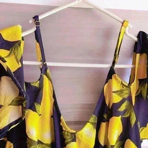 Women’s Rosette Spring Blue Dress With Yellow Lemons Flutter Sleeve Chiffon M