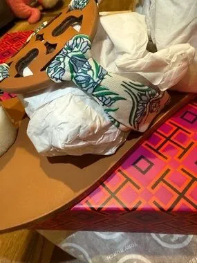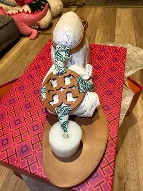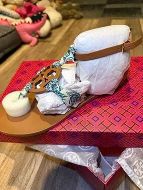 Brand New Tory Burch Tan Leather Miller Scarf Sandals