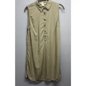 The C&C California Sleeveless Shirt Dress in size medium is a stylish and versatile piece perfect for casual occasions. Made from 100% Lyocell in a solid green color, this dress features a collared neckline and pullover closure for easy wear. Measures 19” P2P and 34” long approximately. With a knee-length design and chambray fabric type, it is suitable for the summer, fall, and spring seasons. Additionally, the dress includes pockets for added convenience, making it a practical yet fashion-forward choice for women looking for a comfortable and chic outfit.