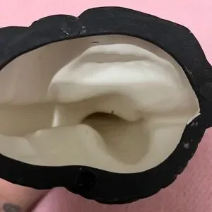 Vintage 1998 DHM King Cobra snake figurine features a striking flared hood and coiled body design. This collectible piece is crafted with intricate scale textures and a dark, matte finish with subtle reddish-brown highlights. The underside is hollow, and the back base is marked with the DHM copyright from 1998. Perfect for collectors of reptilian decor or vintage 90s animal statuettes.