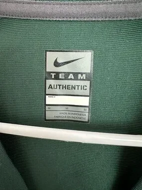 Team Authentic label at collar. Solid green knit fabric. Gray trim accents at neckline. Classic athletic styling for game or practice.