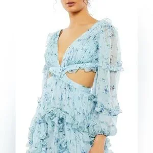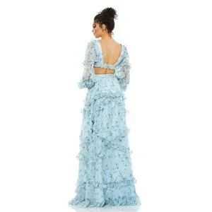 Mac Duggal 67949 NWT Chiffon Evening Dress with Floral and Ruffles