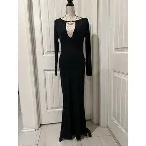 Princess Polly Women’s Adesa Long Sleeve Keyhole Plunge Tulle Maxi Dress Black 6