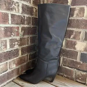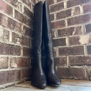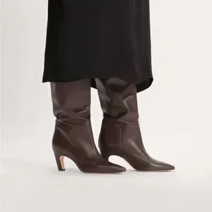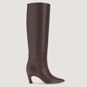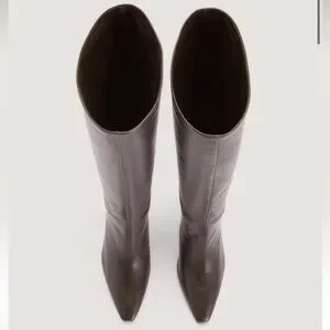 Everlane Women’s Banana Boot Tall Knee-High Leather in Dark Brown Size 11. Pointed toe and curved mid heel. Smooth leather shaft for a streamlined look. Versatile, wardrobe-friendly silhouette.