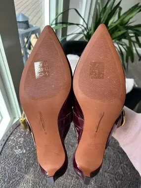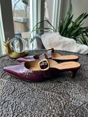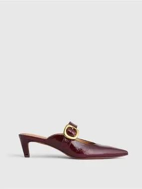 Made from leather, these mules feature a sleek pointed toe and kitten heel. The sculpted buckle strap adds a touch of modern sophistication, making them perfect for both day and night looks.
