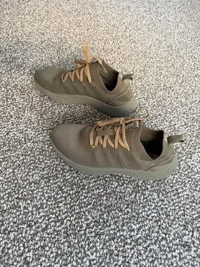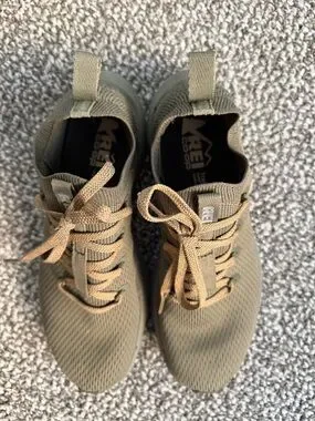 REI Olive Green Knit Athletic Sneakers with Tan Laces