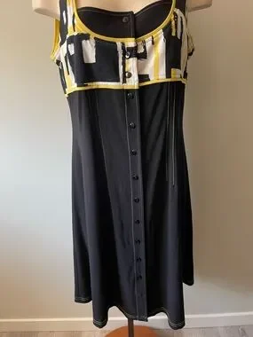 90s Y2K Joseph Ribkoff Front Button Sleeveless Midi Dress Mod Colorblock Size 16