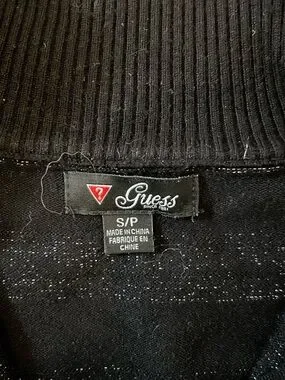 Guess Striped Black Zip-Up Sweater w Gem Logo