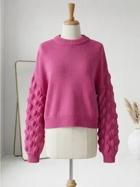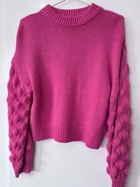 Divided| H&M| Barbie Pink Balloon-Sleeve Cozy Crewneck Sweater Sz S