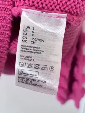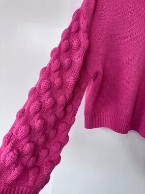 Chunky H&M Divided knit crewneck with textured cable sleeves. Ribbed neckline, cuffs, and hem for structure. Vibrant pink adds a playful pop. Size small.