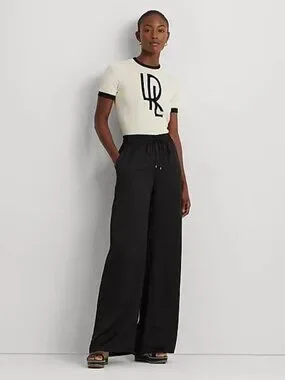 $165 Lauren Ralph Lauren Satin Charmeuse Wide-Leg Pant Black Size M