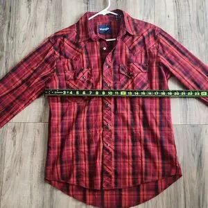 Wrangler Mens Plaid Button Up Shirt Red Black Long Sleeve Western MVG291R