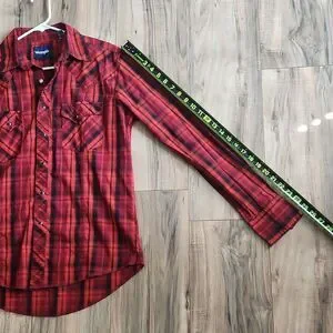 Add a rugged, classic staple to your wardrobe with this Wrangler Men's Red & Black Plaid Button-Up Shirt, style MVG291R. Designed with a timeless Western-inspired look, this long sleeve shirt features a bold plaid pattern, point collar, and durable constructionperfect for both workwear and casual everyday outfits.