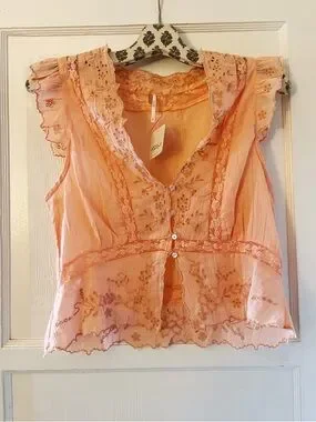 Balance understated sophistication with this effortless top, crafted from lightweight cotton and featuring a breezy, relaxed silhouette and lace panel detailing for a femme finish.
