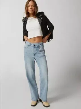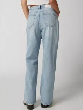 Light wash high-rise straight leg jeans with a relaxed silhouette. Classic five-pocket styling and subtle fading. Easy to pair for casual looks.