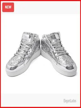 Women's Platform Glitter Sneakers High Top Sparkly Dressy Sequin Metallic