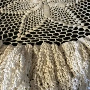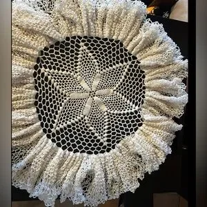 This handmade crochet white doily with a ruffled border is a decorative piece for your home. Perfect for all occasions and features intricate crochet detailing. The unique ruffled pattern adds a touch of elegance.