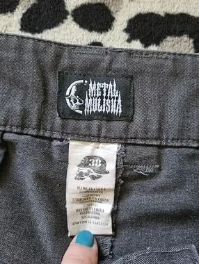 Vintage Metal Mulisha Mens Size 38 Gray Cargo Shorts Embroidered Logo with Pockets Cotton Blend