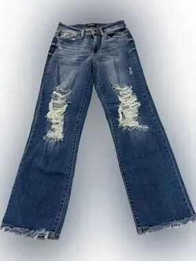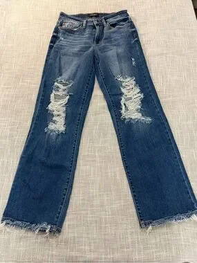 Judy Blue Dad Jeans Distressed Raw Hem High Rise 5/27