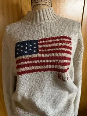 Ralph Lauren Cream Cable Knit Sweater with Navy Polo Label