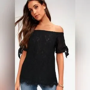 Lulu’s Ethereal View Black Lace Off-the-Shoulder Top size XL