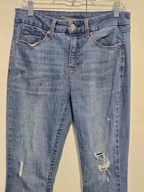 Seven7 Skinny Jeans Size 10 Medium Wash Distressed Stretch Denim High Rise