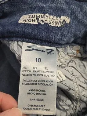 Seven7 jeans, skinny jeans, distressed denim, ripped jeans, stretch jeans, high rise jeans, women’s denim, casual wear, everyday jeans, fitted jeans, trendy denim, streetwear, modern style, closet staple, medium wash jeans