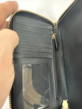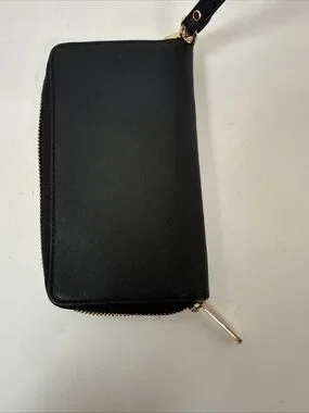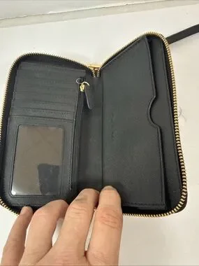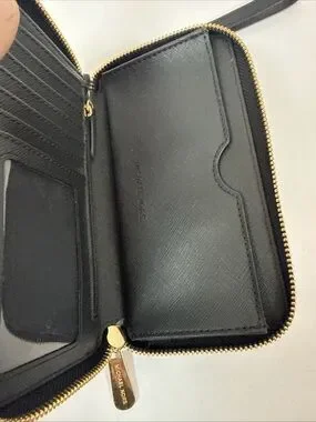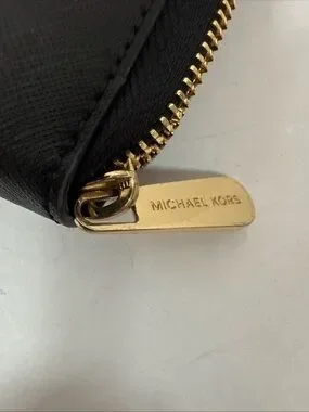Michael Kors Jet Set Black Wristlet Wallet Zip Around Phone Holder Gold