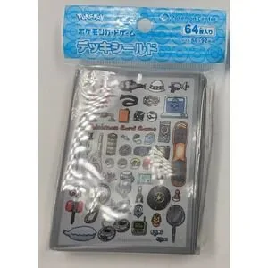 Authentic Pokemon Center Japan deck shields feature a unique collage of iconic items from the Pokemon universe, including Poke Balls, berries, and adventuring gear. This pack contains 64 high-quality card sleeves designed to protect standard-sized trading cards while adding a touch of classic trainer style to your deck. The matte finish and durable construction ensure smooth shuffling and long-lasting protection for collectors and players alike.