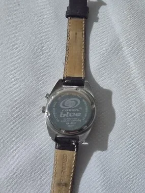 Fossil Blue Dial 31 mm Stainless Watch AM-3551 100m with Black Leather Strap