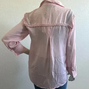 Zara Women's Long Sleeve Pink Collared Textured Combination Shirt, Good Condition