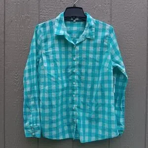 CROWN & IVY NWT Turquoise Women's Plaid Button-Up Shirt SizeL