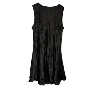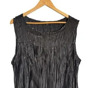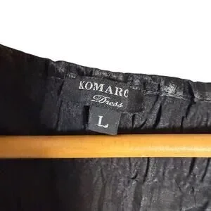 Komarov Black Crinkled Sleeveless Knee Length Fit & Flare Cocktail Dress Large