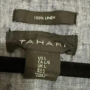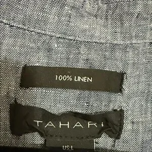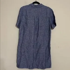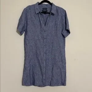 Tahari Casual Blue Button Down Shirt dress chambray linen women L beach vacation