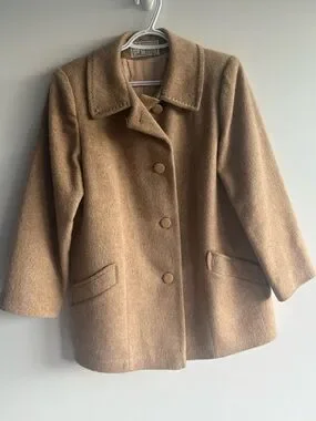 Vintage Fashion Gallery Wool Coat Camel Brown Size 14 Petite Made in Canada