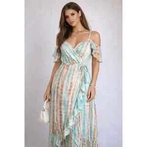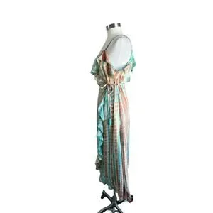 Khush Cold Shoulder Wrap Maxi Dress Boho Resort Vacation Floral L