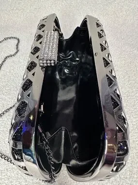 Black Rhinestone and Gunmetal hard clutch