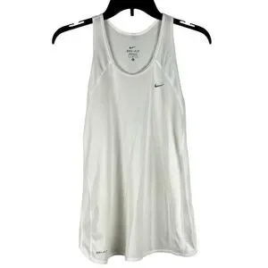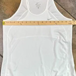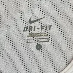 Nike Dri-FIT White Racerback Tank Top Large. There are some light stains and small snags. Please see all photos. Measurements in photos. In good, pre-loved (used) condition.