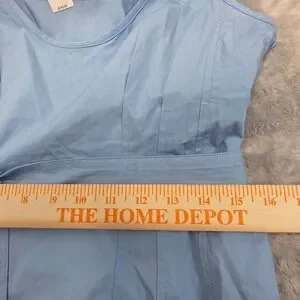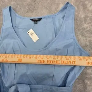 Banana Republic Women 10 Blue Poplin Scoop Princess Seams Midi Dress Tie Waist