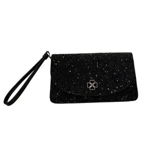 Kate Spade Glittery Evening Bag Wristlet 4 Leaf Clover Closure 3 Compartments