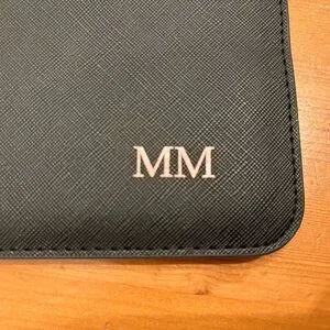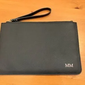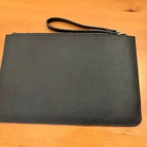 Sleek and stylish black leather wristlet clutch, perfect for any occasion. Features a minimalist design with a convenient wrist strap.