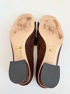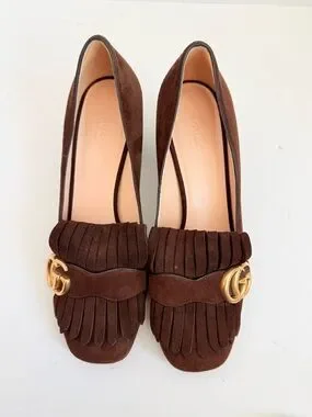 Gucci Dark Chocolate Brown Marmont GG fringe block heel Loafer pumps EU 38.5