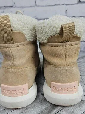 Sorel Womens 9 NL4451-262 Cozy Suede Winter Boots Sherpa Lined Booties Beige