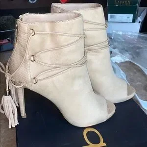 Elevate your style with these stunning cream heeled boots from Bebe, designed to add a touch of chic elegance to any ensemble. The sleek silhouette and comfortable heel height make them perfect for both casual outings and formal events. Crafted with precision, these boots promise both style and durability.