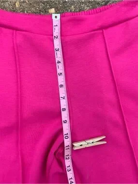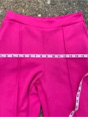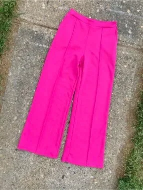 Cute and comfortable High Rise Wide Leg Hot Pink / magenta Women’s Pants in Size XS by Scoop. NWT. Elastic Back Waistband. These pants are new and as shown in picture there appear to be tiny “pulls” in the pants; characteristic of the fabric. 26in. Waist & 29in. Inseam.