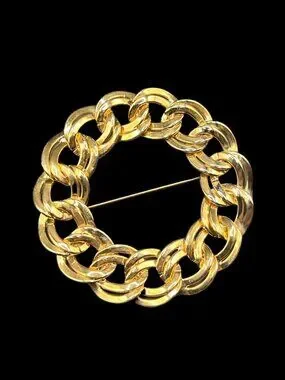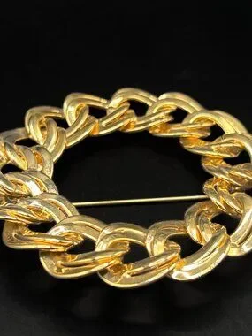 Vintage 1980s Monet Gold Circle Chain Wreath Brooch