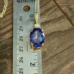 Oval Tanzanite 18mm x 13.5mm Pendant Necklace Gold Vermeil 18” Vintage Style