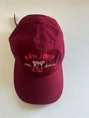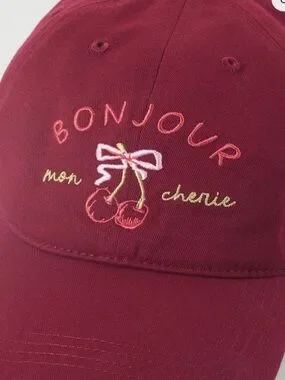 Anthropologie Fall Icon Baseball Cap Bonjour Red Mon Cherie Cherry Size ALL NWT