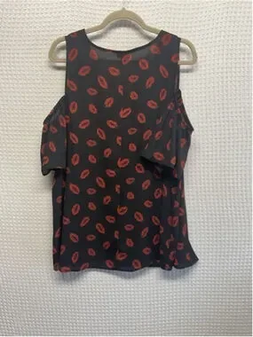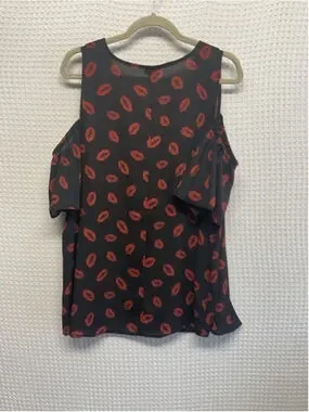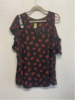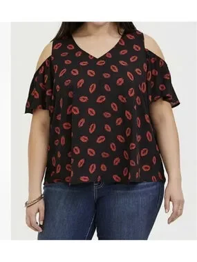 New without tags Torrid Black/Red Lips Print Cold Shoulder V-Neck Blouse Women 2X