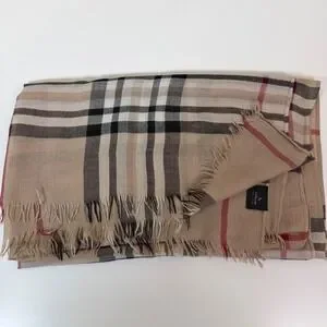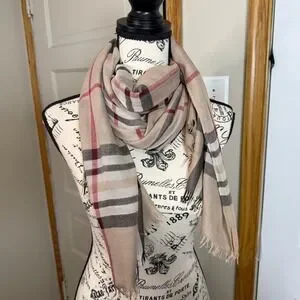 Beige Red Black Plaid Oversized 32"x 80"Scarf/Shawl Fringe Wrap Preppy V. FRASS